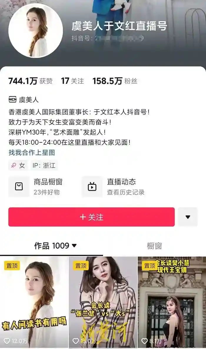 天眼查显示,身陷悬赏事件的当事人于文红,名下拥有数十家医美机构。在抖音平台上,她经常通过直播与粉丝互动,分享自己和家人的成长经历以及集团动态,是拥有超158万粉丝的医美行业大咖。