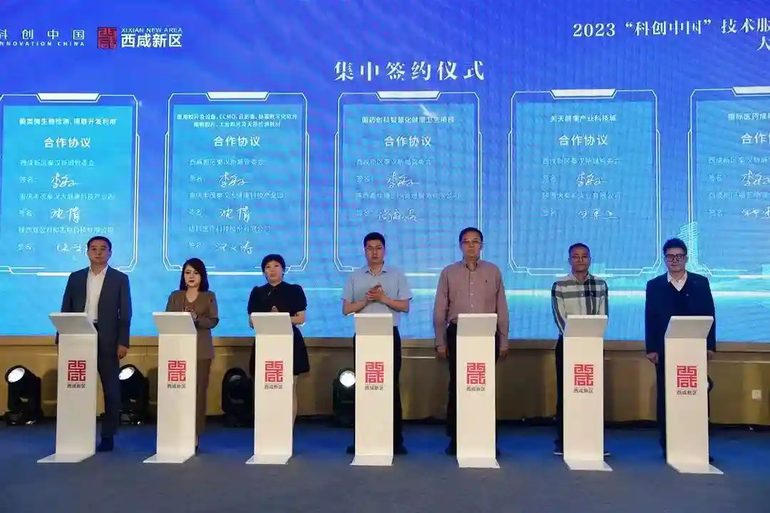 会上,国际医药成果转化中心,菌类微生物检测、提取开发利用,悦春风医养,医用胶片及设备、ECMO、云影像、档案数字化软件、缩微胶片、工业胶片及无损检测耗材,关天健康产业科技城等多个科研及产业项目签约落户秦汉新城。
