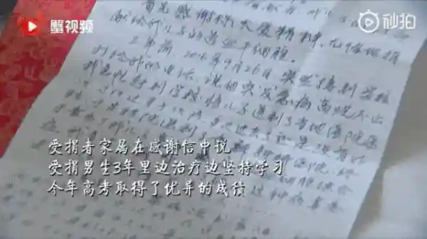 受捐男生一直边治疗边坚持学习