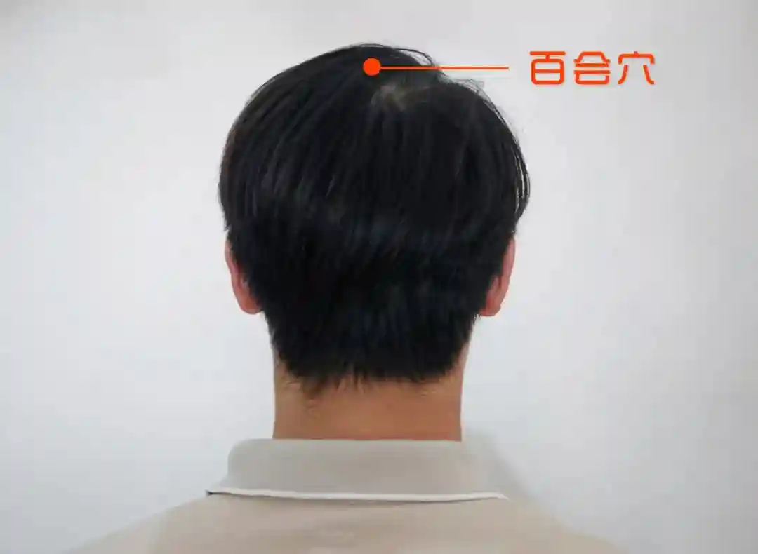 头顶是脱发最严重的地方,可以用拇指指腹按摩头顶百会穴,局部改善血液循环,增加对头发的营养供应。