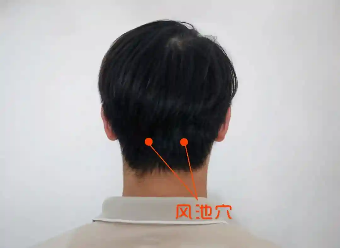 风池穴:后头骨下,两条大筋外缘陷窝中,相当于耳垂平齐。