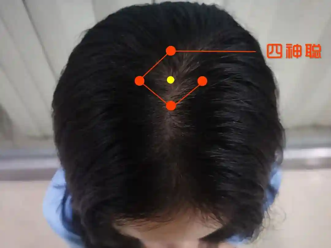 四神聪:百会穴前后左右各一横指处,共四穴。