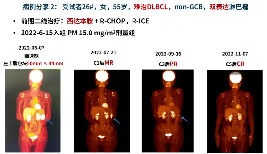 I期临床数据表明,PMI期单药治疗R/RDLBCL的ORR达到63.6%(%),且对双表达淋巴瘤有效,有望单药通过进一步临床试验,获得突破性疗法成为获批治疗R/RDLBCL的首个高选择性HDAC抑制剂。基于上述PM治疗DLBCL的良好疗效,四川大学华西医院血液内科联合上海交通大学医学院附属瑞金医院血液内科牵头,于2022年9月启动了关于PM治疗R/RDLBCL的有效性和安全性的开放性、多中心II期临床试验,希望未来可以为R/RDLBCL患者提供更多治疗选择。