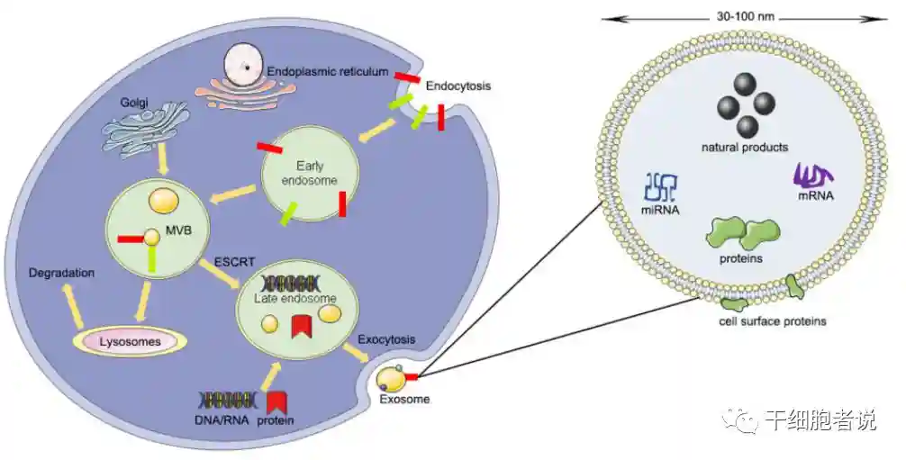 外泌体,一种直径约30-150nm的纳米级囊泡,起源于细胞内吞过程中形成的内体,再从细胞中释放到胞外。几乎所有细胞都可以分泌外泌体。如果这个外泌体恰好是干细胞分泌的,那就叫干细胞外泌体。如果是肿瘤细胞分泌的,那就叫肿瘤细胞外泌体。