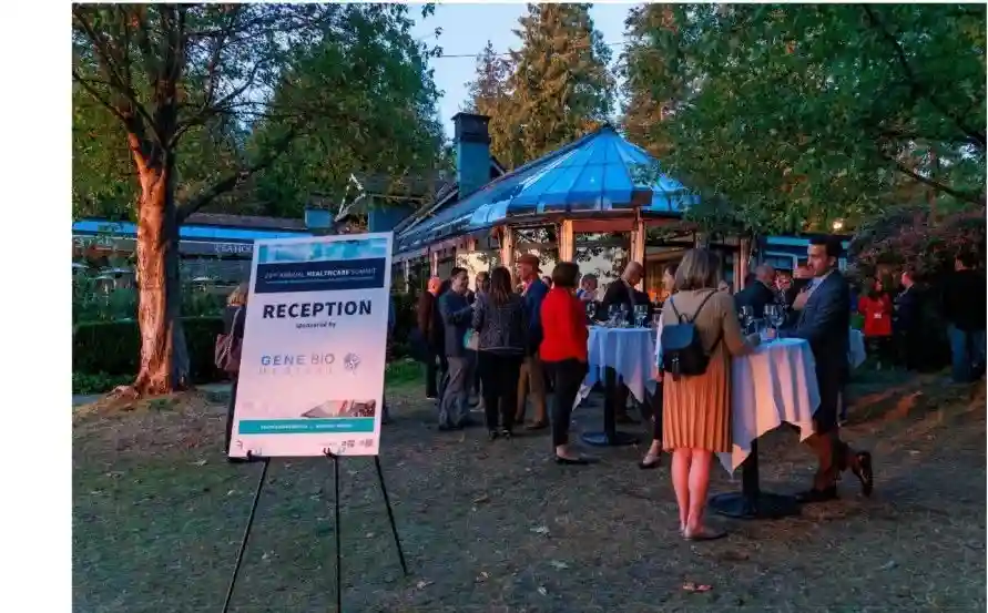 GeneBioMedical(加拿大金铂尔生物科技有限公司)是峰会第一天结束后举行招待会的贵宾赞助商。酒会在温哥华史丹利公园的树屋餐厅举行。这是一个美丽的场地和完美的夜晚,充满了鼓舞人心的对话,行业领袖之间讨论如何将医疗保健系统转变为数字时代。GeneBioMedical(加拿大金铂尔生物科技有限公司)首席财务官RobertPeets发表了演讲。