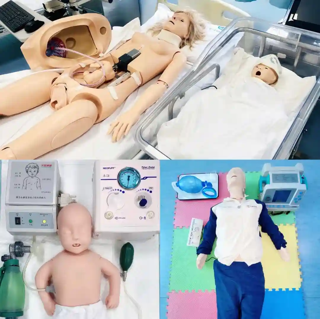 基地配有多元化教学设施设备:技能实训、模拟医学教学(产房),客观结构化的OSCE考站拥有教学培训设备和模型400余件,包括高级分娩机母子急救模型、高仿真分娩模型、新生儿复苏模型等,满足学员多层面、多元化的培训和考核需求。