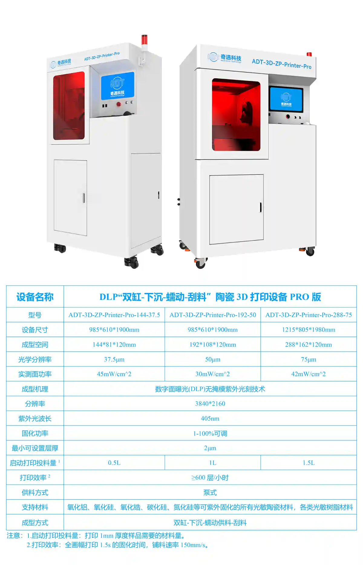 △奇遇科技工业级光固化陶瓷3D打印设备相关参数