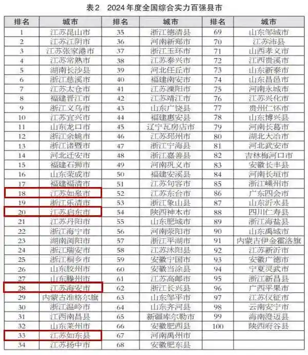 昨天,中国中小城市发展指数研究课题组、国信中小城市指数研究院在《》上发布《2024年中国中小城市高质量发展指数研究成果》,其中2024年度全国综合实力百强县市发布,南通4县市全部上榜,如皋、启东挺进20强。(详情见)