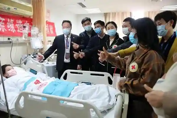 陈超霞捐献完毕后,社会各界人士前来看望。