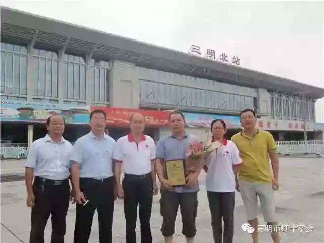 8月2日,陈凯乘动车返回三明,三明市、永安市两级红十字会有关人士到三明动车北站迎接