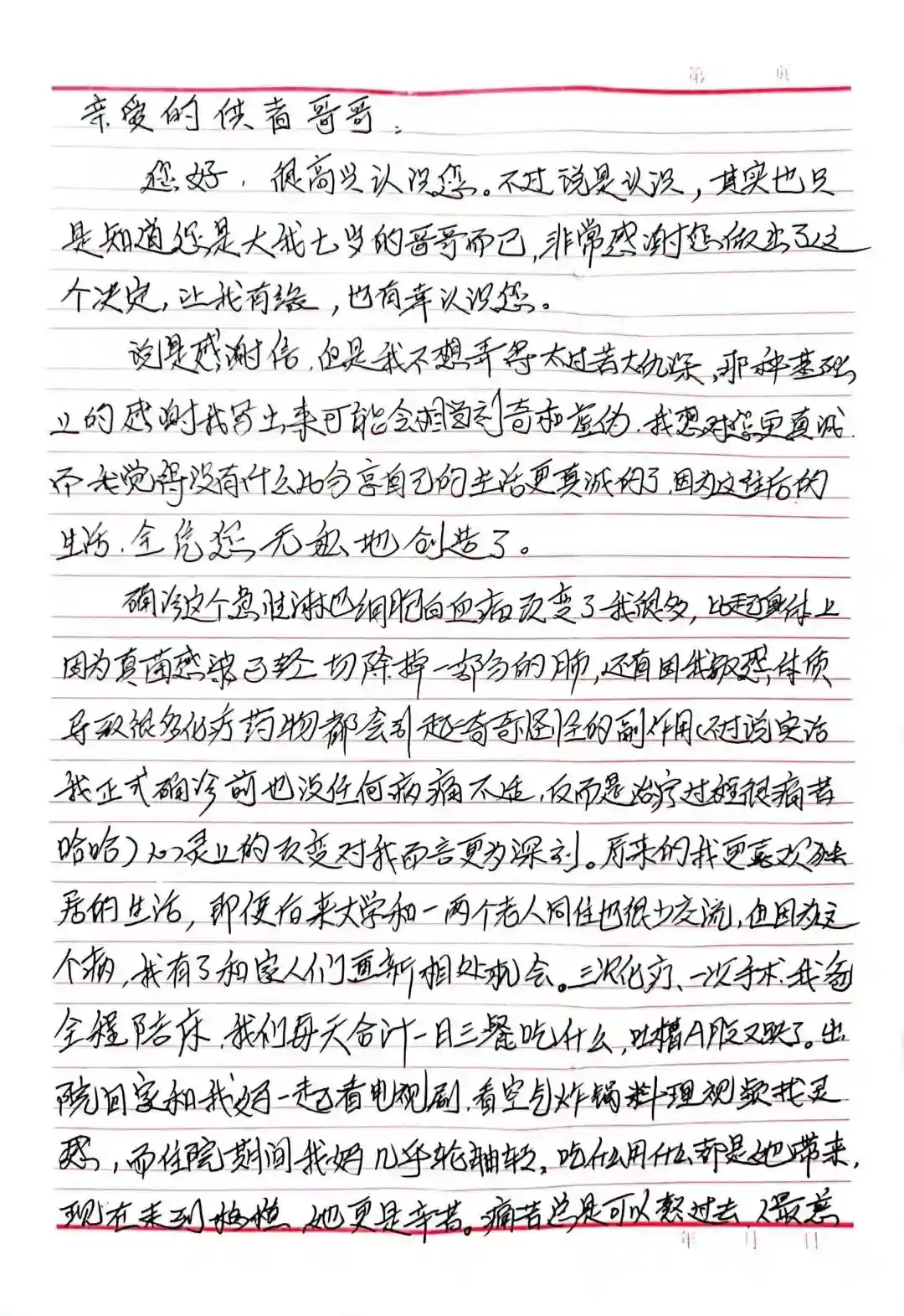 给崔开庚写了一封长达一页半的手写信,