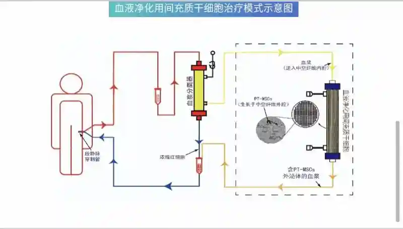 它是由一罐生长着人间充质干细胞(MSCs)的中空纤维膜式生物反应器构成,基于产品旁分泌机制,通过人工肝血液净化模式开展治疗。救治大动物肝衰竭模型表现出非常好的治疗效果,治疗生存率与常规治疗相比从17%提升为87.5%。