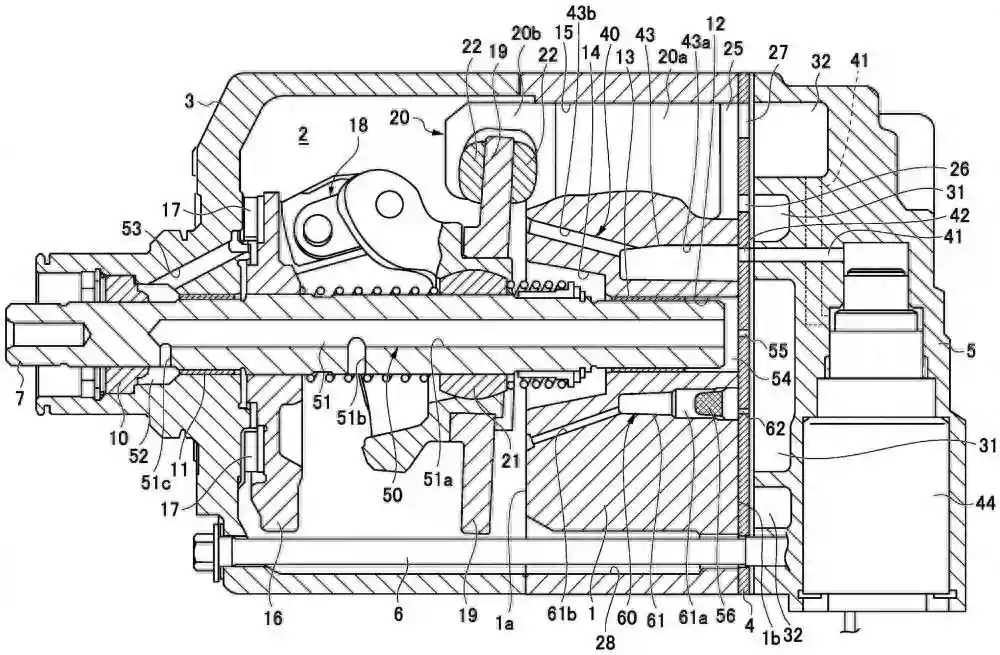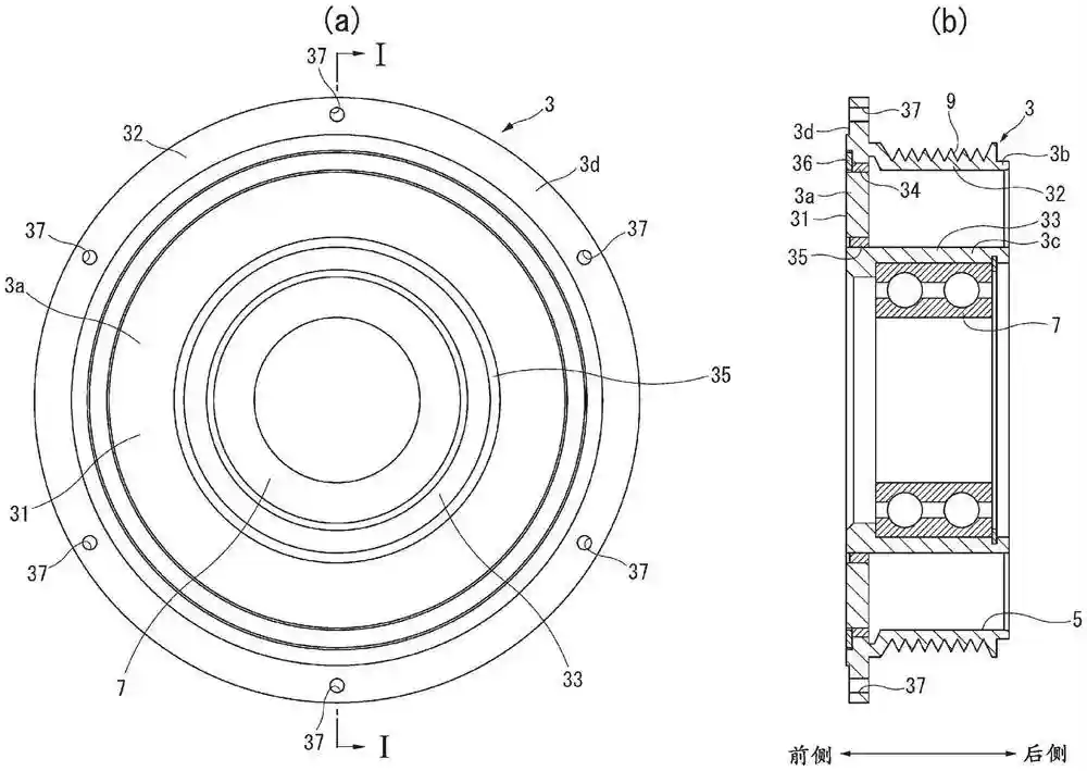 3、转子,3a、摩擦壁,3b-3c、外-内周边壁,3d、突出壁,37、螺钉孔。