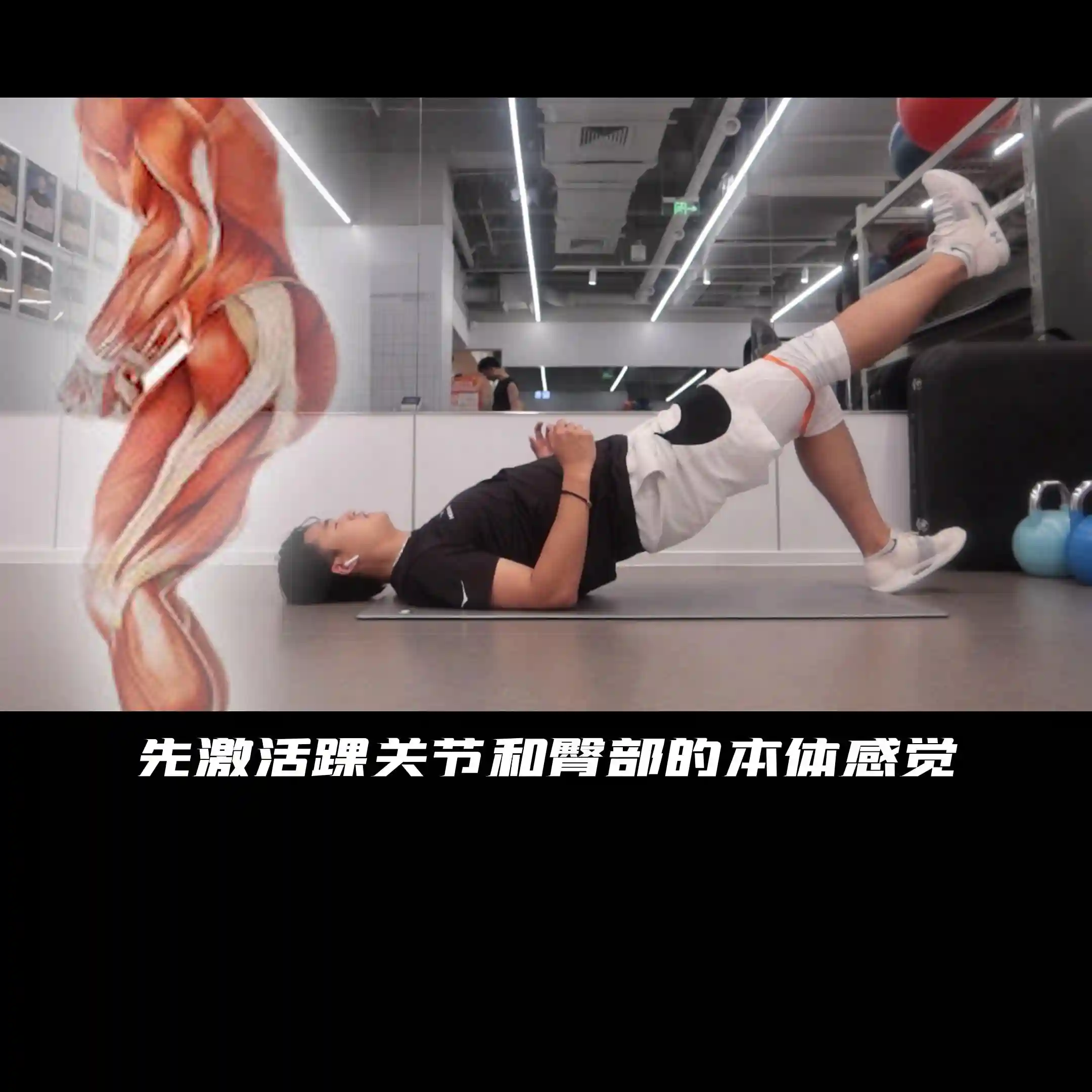 ·第1步,找回臀部本体感觉。臀桥1min组,蚌式开合20个3组。前期如果你的膝盖已经开始疼痛了,那根据谢医生的逻辑,半月板损伤先找两端的问题。先激活踝关节和臀部的本体感觉。臀部动作可以选择臀桥和蚌式开合,因为这两个动作膝关压力最小。做这个练习的时候,必须要求臀部爆酸才有意义。找不到臀部发力的本体感觉,一样都白扯!