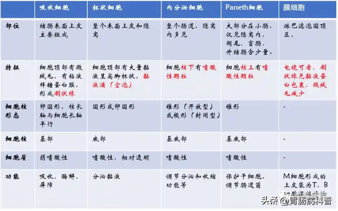 结肠黏膜更新频率很高,其隐窝底部间质内含有干细胞,干细胞可以分化成熟迁移,形成吸收细胞,杯状细胞,内分泌细胞,Paneth细胞,膜(M)细胞。