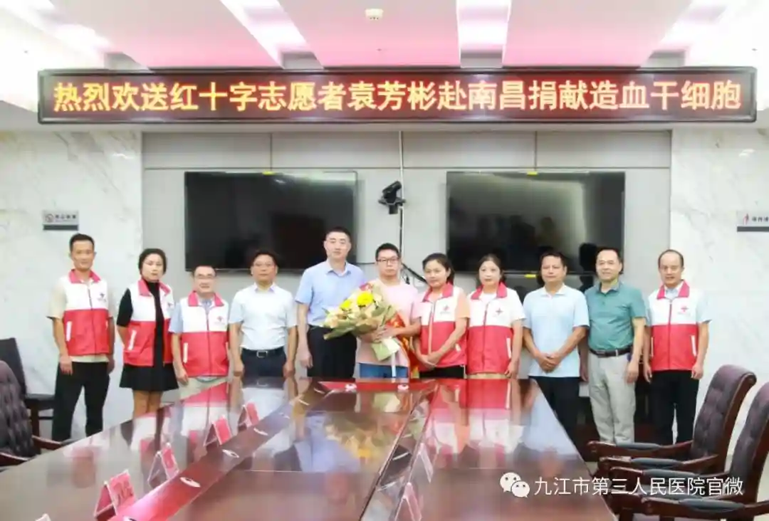 九江市第三人民医院中医科医生袁芳彬,作为一名造血干细胞捐献的志愿者,与南昌大学第一附属医院的一名地中海贫血症患者配型成功,即将奔赴南昌捐献造血干细胞。