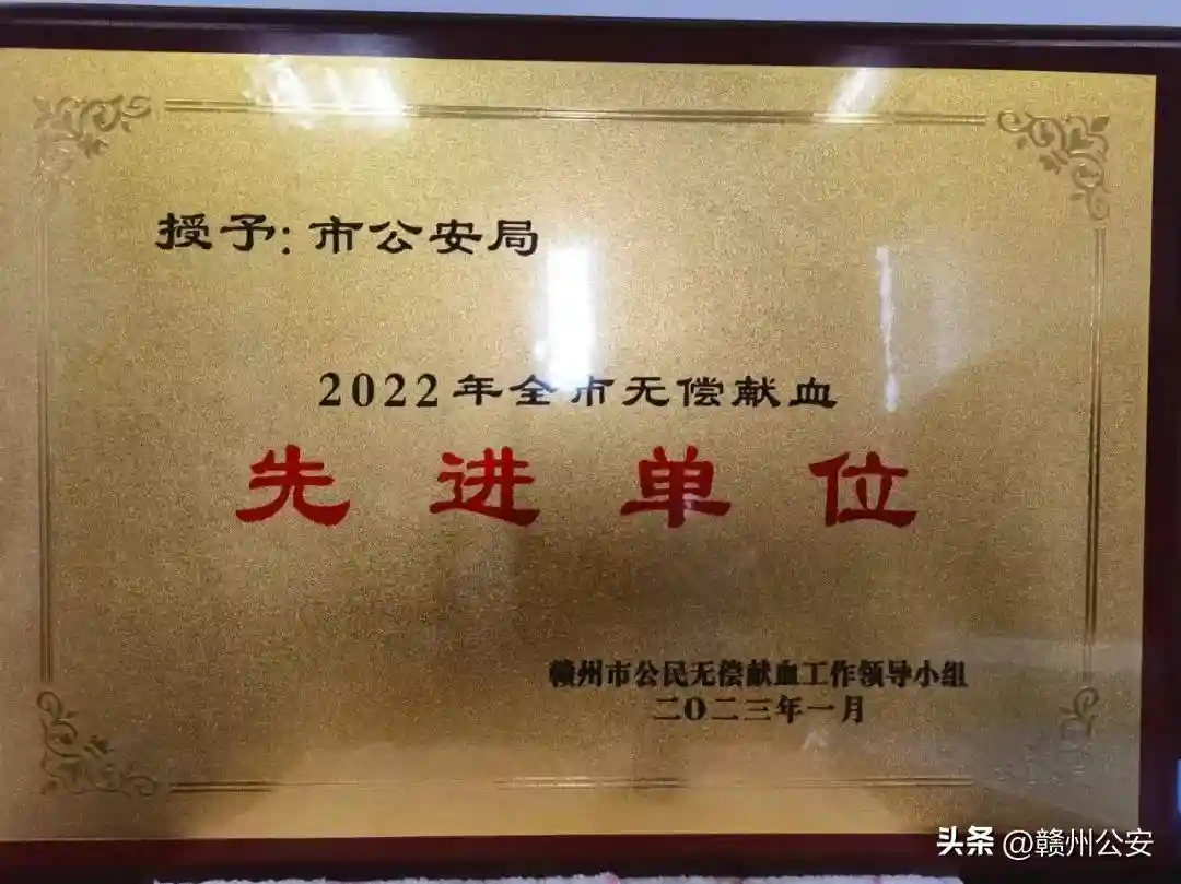 一直以来,市公安局党委高度重视无偿献血工作,充分发挥文明单位的示范作用,坚持组织民警职工参加无偿献血爱心活动,全体民辅警积极响应无偿献血号召,广泛参与,近年来累计献血人数1500余人次,献血总量由达到44万cc,充分展现了新时代赣州公安民警职工勇于担当、乐于奉献的良好精神风貌。