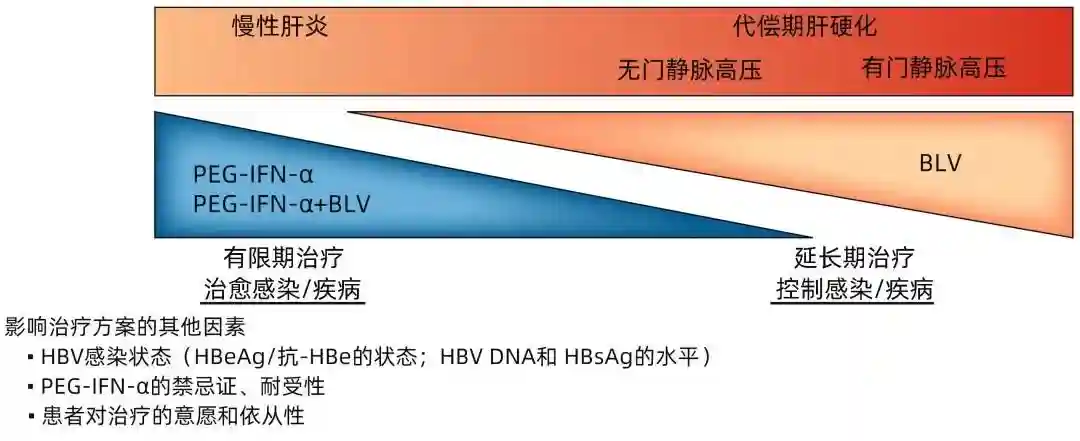 尽管缺乏BLV长期疗效、安全性及治疗最佳疗程的相关数据,但Ⅱ期试验(单用BLV或BLV+PEG-IFN-α联合用药)的初步结果、BLV单药治疗的Ⅲ期试验数据和真实世界研究均建议,只要可及,BLV可作为CHD的治疗选择(LoE3,93%共识)。