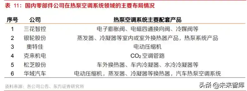 新能源汽车的发展催生了热泵空调系统市场,未来在随着新能源车销量规模的扩大,新能源车热泵空调市场份额有望逐渐提升,布局热泵空调零部件公司有望受益,国内企业有望通过部件的竞争优势和客户的配套优势获得一定市场空间,其盈利和估值有望双升。